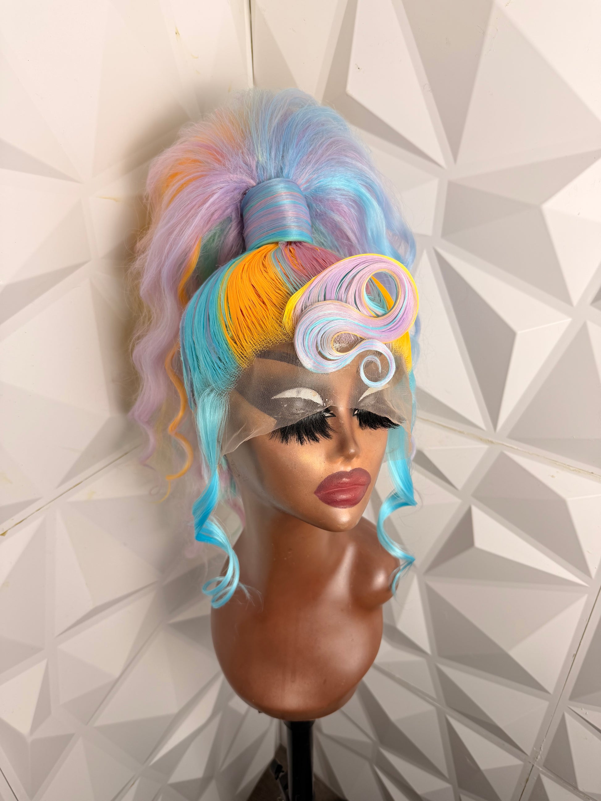 -Styled on a 23 inch wig block